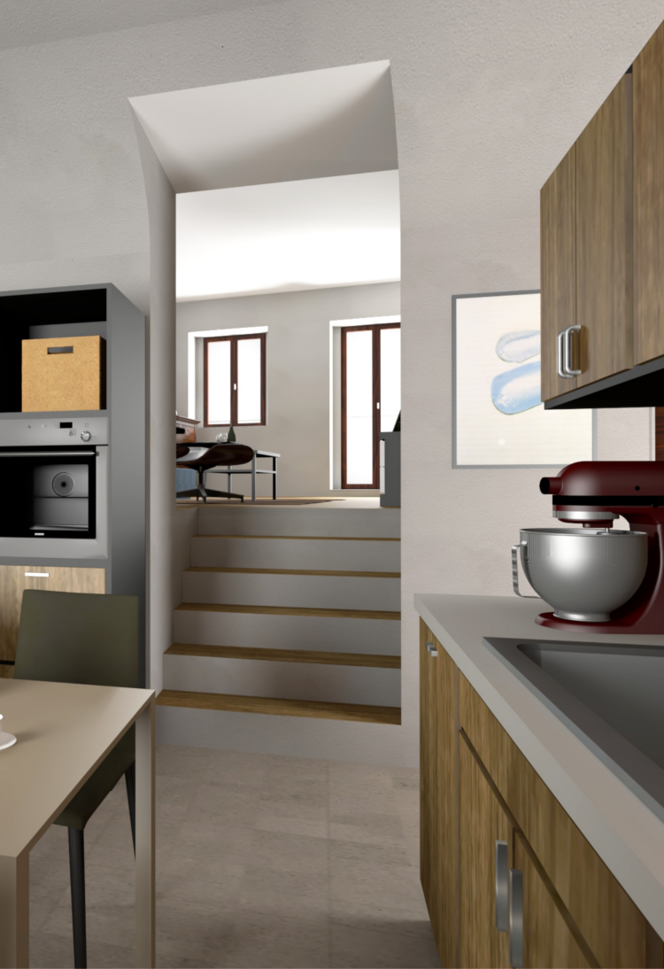 Rilievi dimensionali e fotografici, proposte di arredo e finiture, presentazioni grafiche, rendering, fotomontaggi, design di nuovi elementi di arredo, ricerca e gestione delle imprese di costruzione e gestione delle eventuali pratiche edilizie